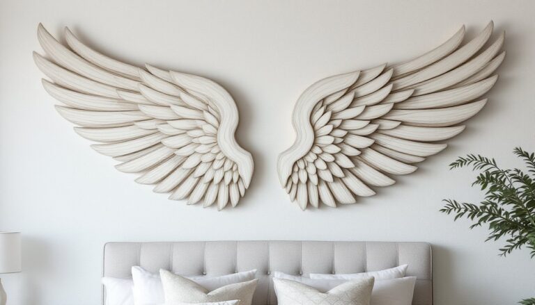 - Building DIY angel wings takes only 6-8 hours and costs $40-70, requiring intermediate carpentry skills and yielding custom-sized pieces that match your room’s exact color scheme.